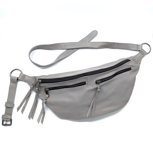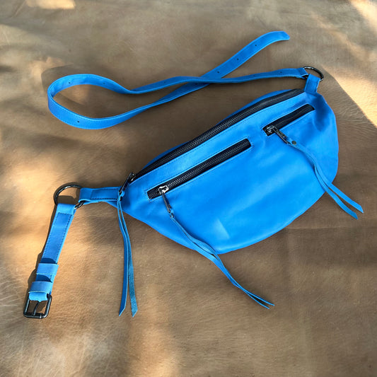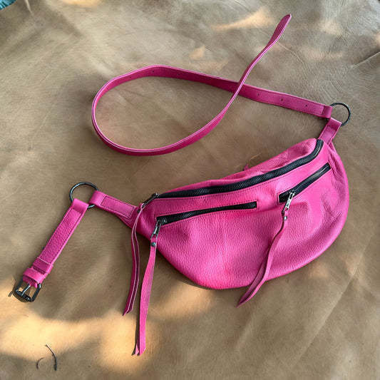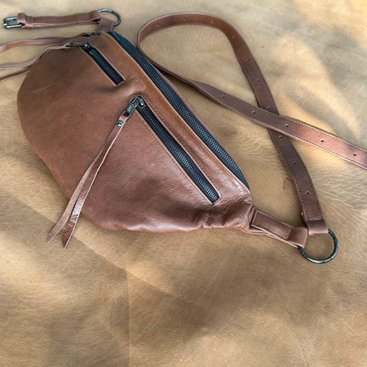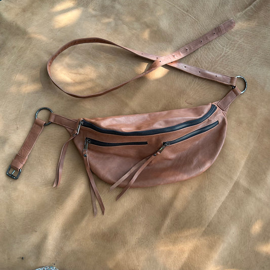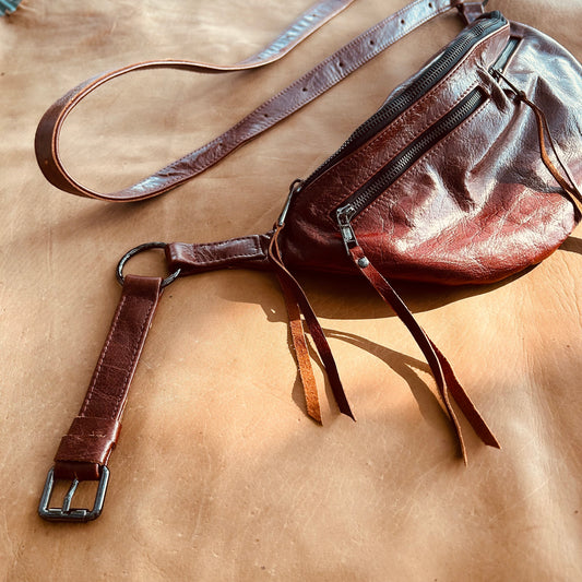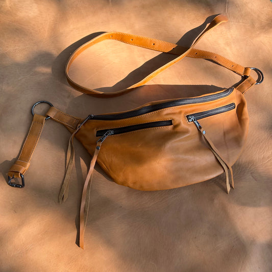 Since our bags are made by a real person, using hand-treated leathers, the pieces can and will have "imperfections" — like a trace of chalk from Ganesh's pattern-drawing, a light mark on a part of leather or a light wearing of the leather from its time in reclamation transit. These are imperfections in appearance, not in functionality, and we find them endearing! We encourage you to embrace them, as they are quite literally the receipts we get for choosing to support sustainable fashion.